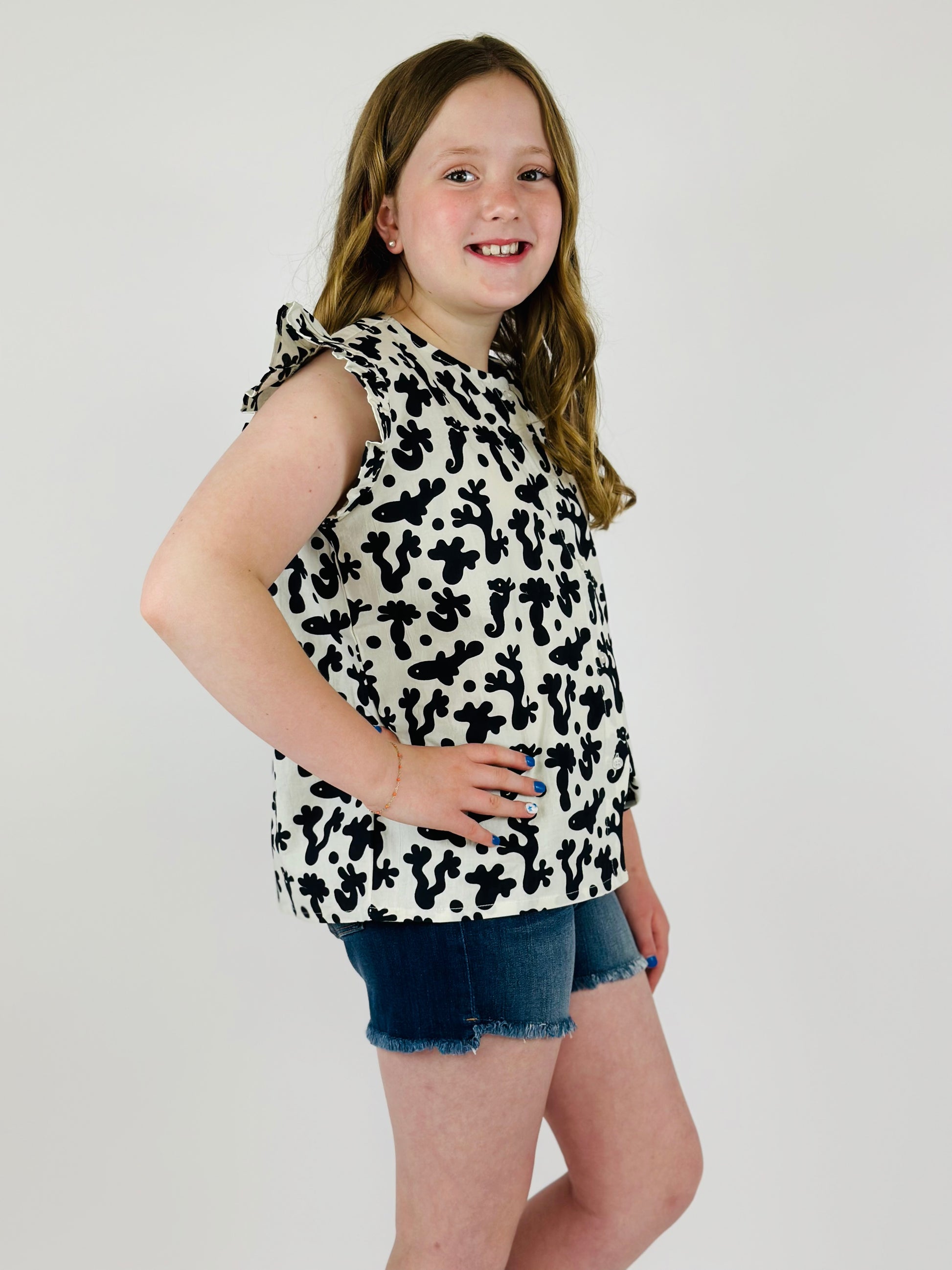 Coral Print Ruffle Top