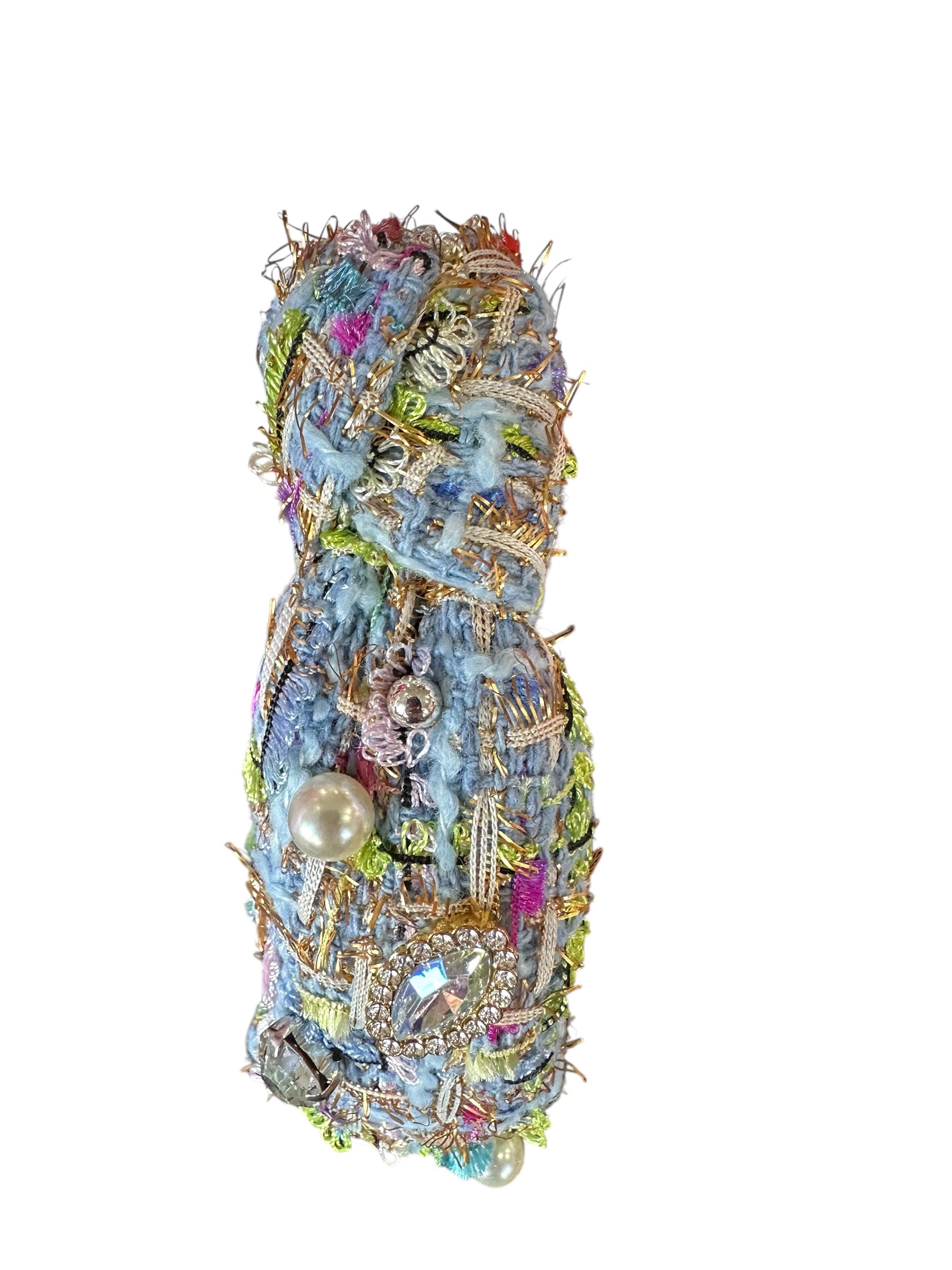 Embellished Knot Headband - Tweed Rhinestone Pearl - Blue