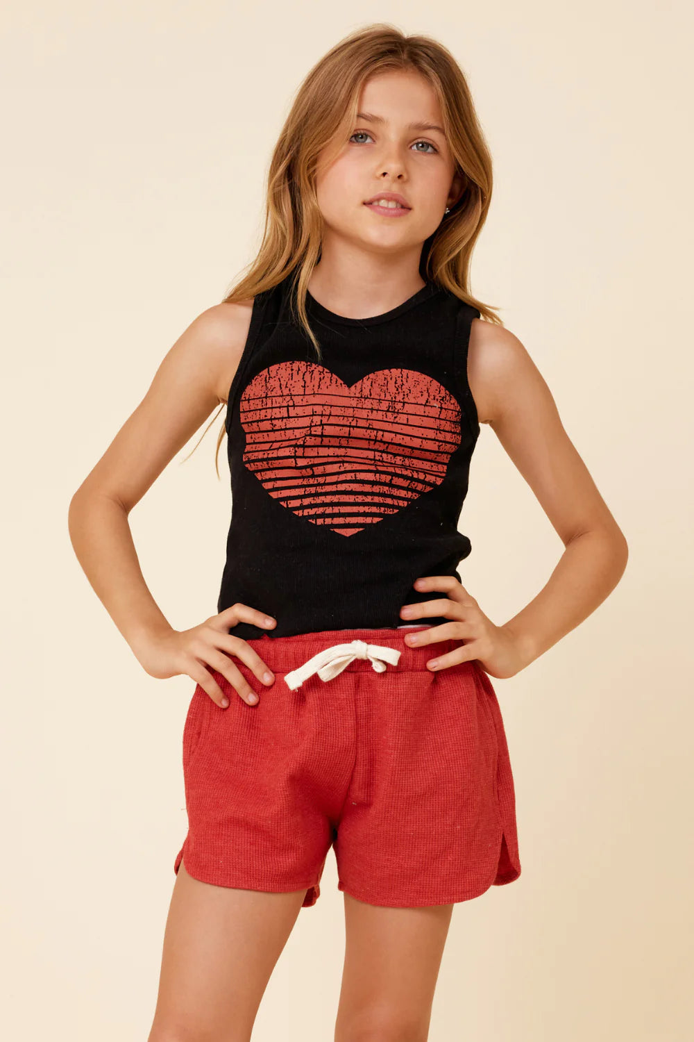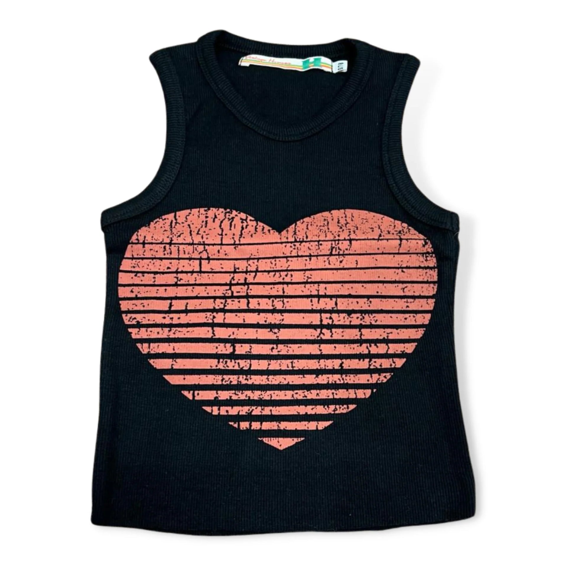 Heart Ribbed Tank - Black