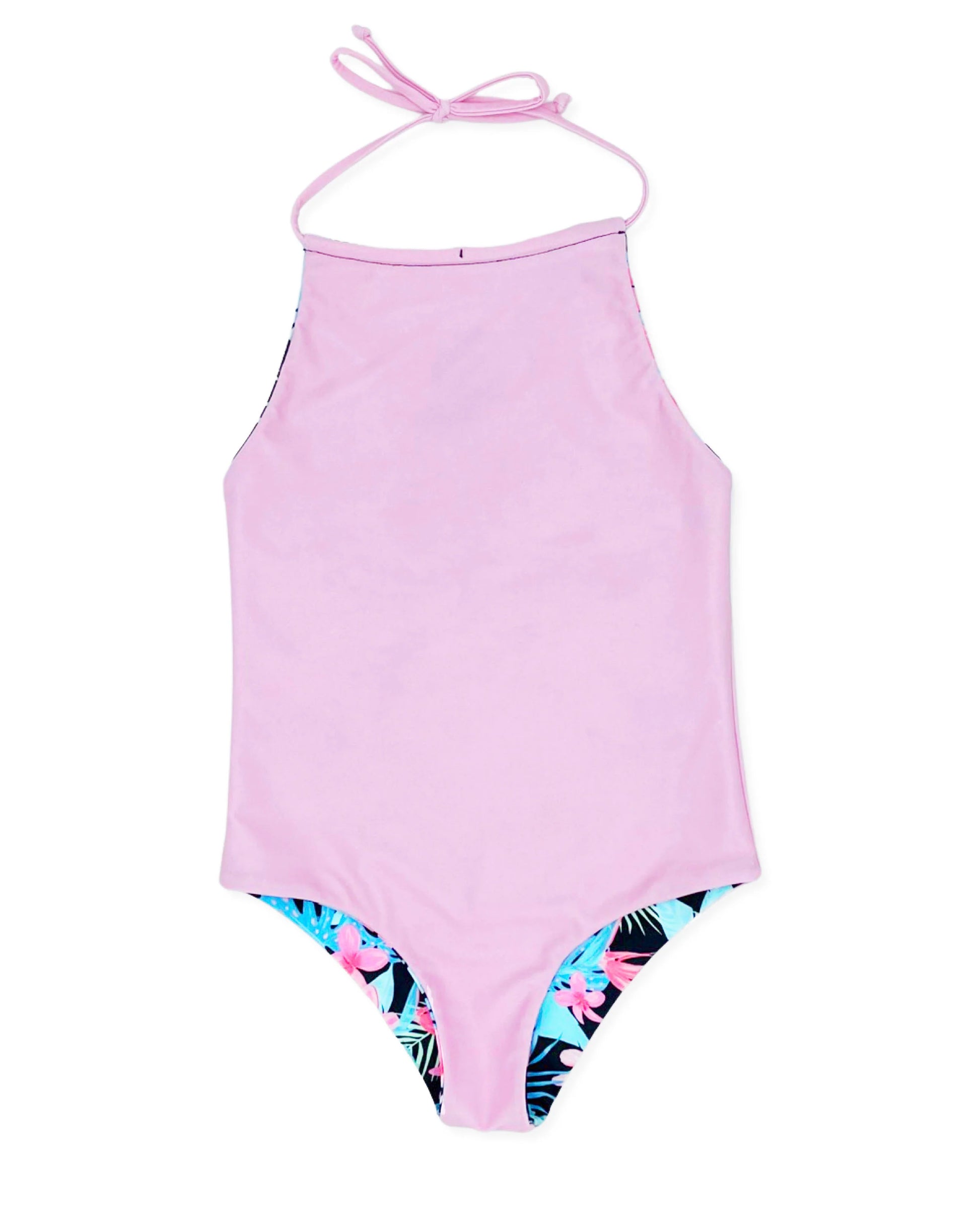 The Riviera halter one-piece swimsuit is feather 4 arrow's new simplified, stylish, and easy-to-wear swimsuit that is fully reversible. Clean lines and a chic high neckline with an adjustable neck strap makes this a beautiful suit for all ages. Fabric is made with 4-way stretch and is soft, lightweight, breathable, fast-drying, and comfortable.