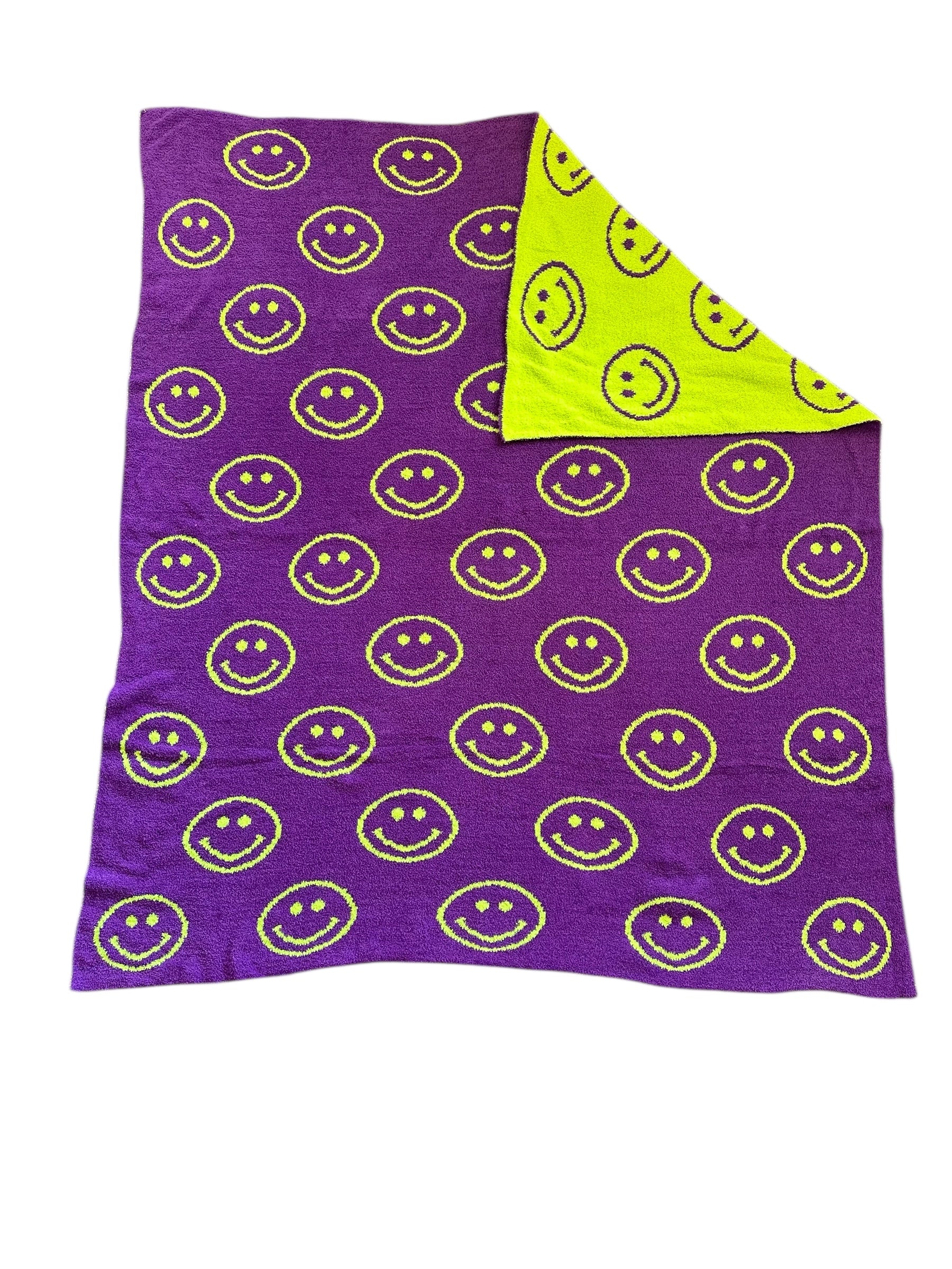 Smiley Plush Throw - Neon Lavender/Neon Lime