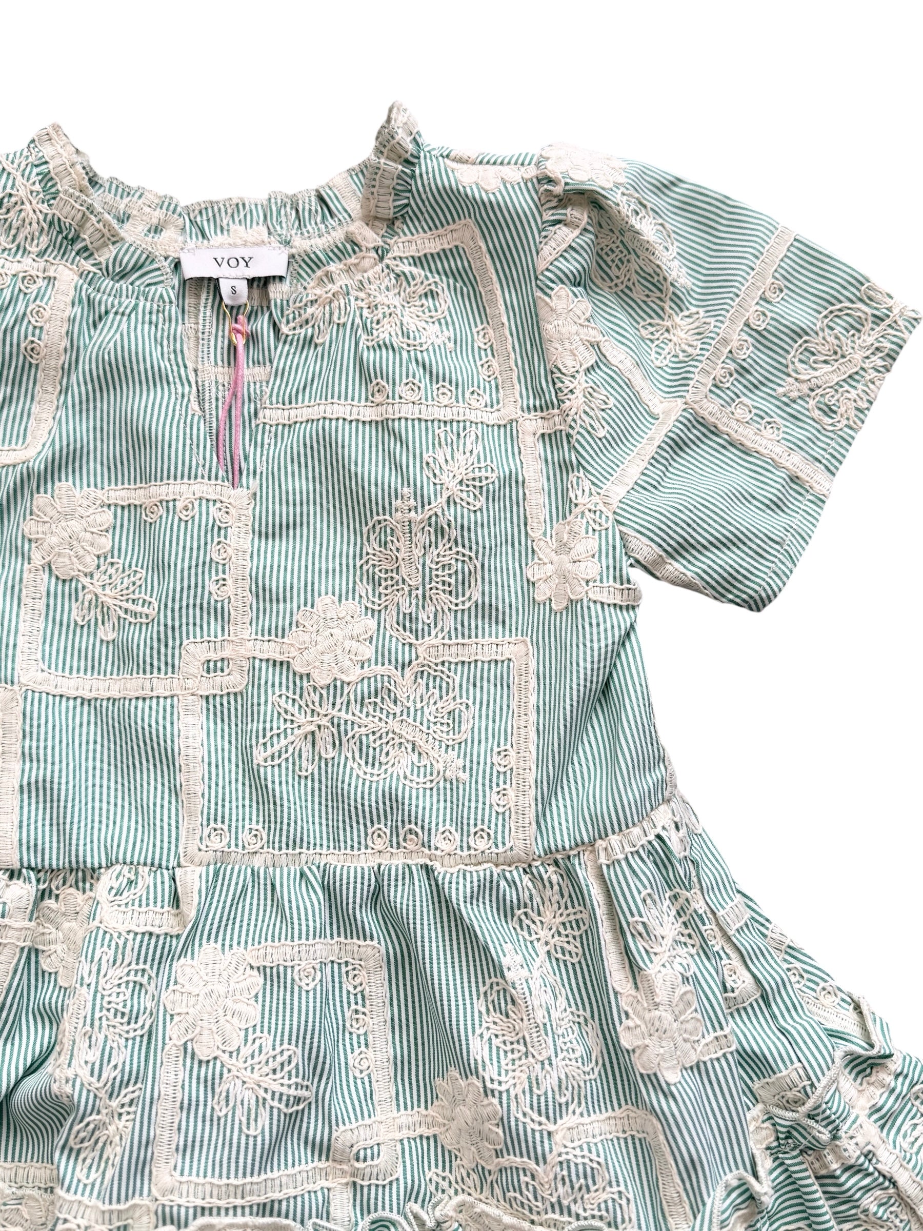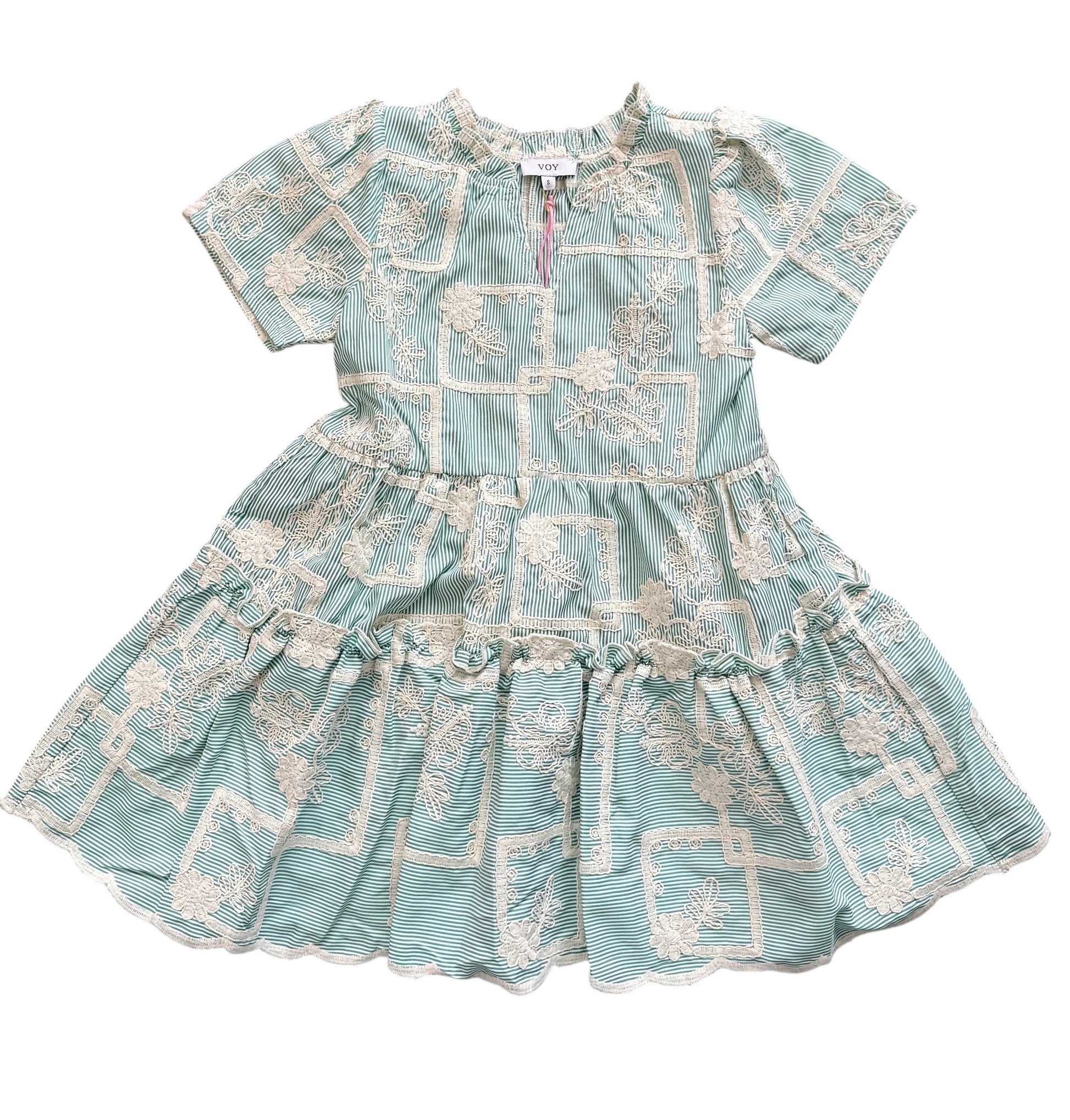 VOY Floral Embroidered Dress - Green