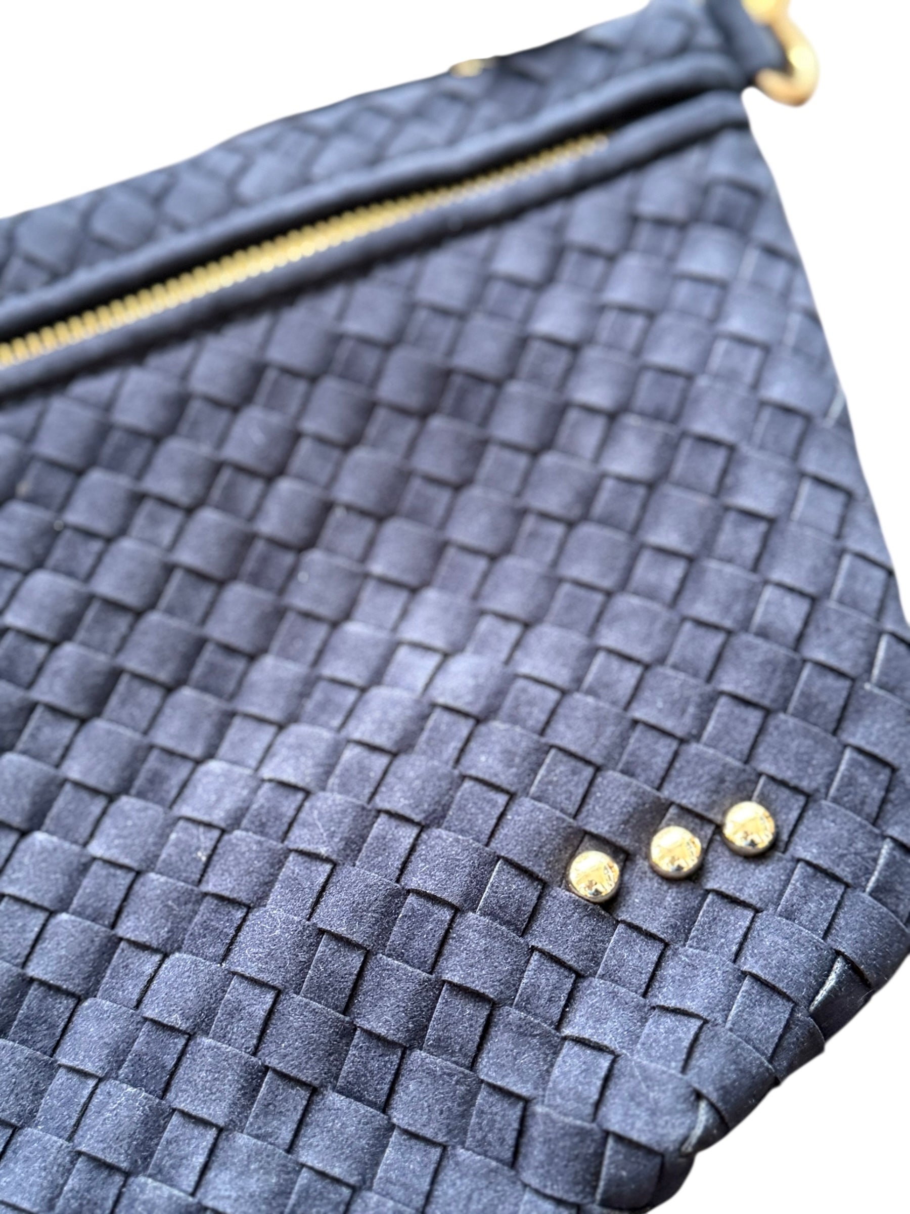Meet the Woven Westlyn Bum Bag! Gorgeous woven vegan leather in Brown and Black with a unique block design on the strap that gives us edgy, rocker vibes. Beautiful hardware with a zipper closure with beige and black chevron interior, and a zippered slash pocket on the inside. This crossbody bag is the perfect accessory to elevate any outfit!