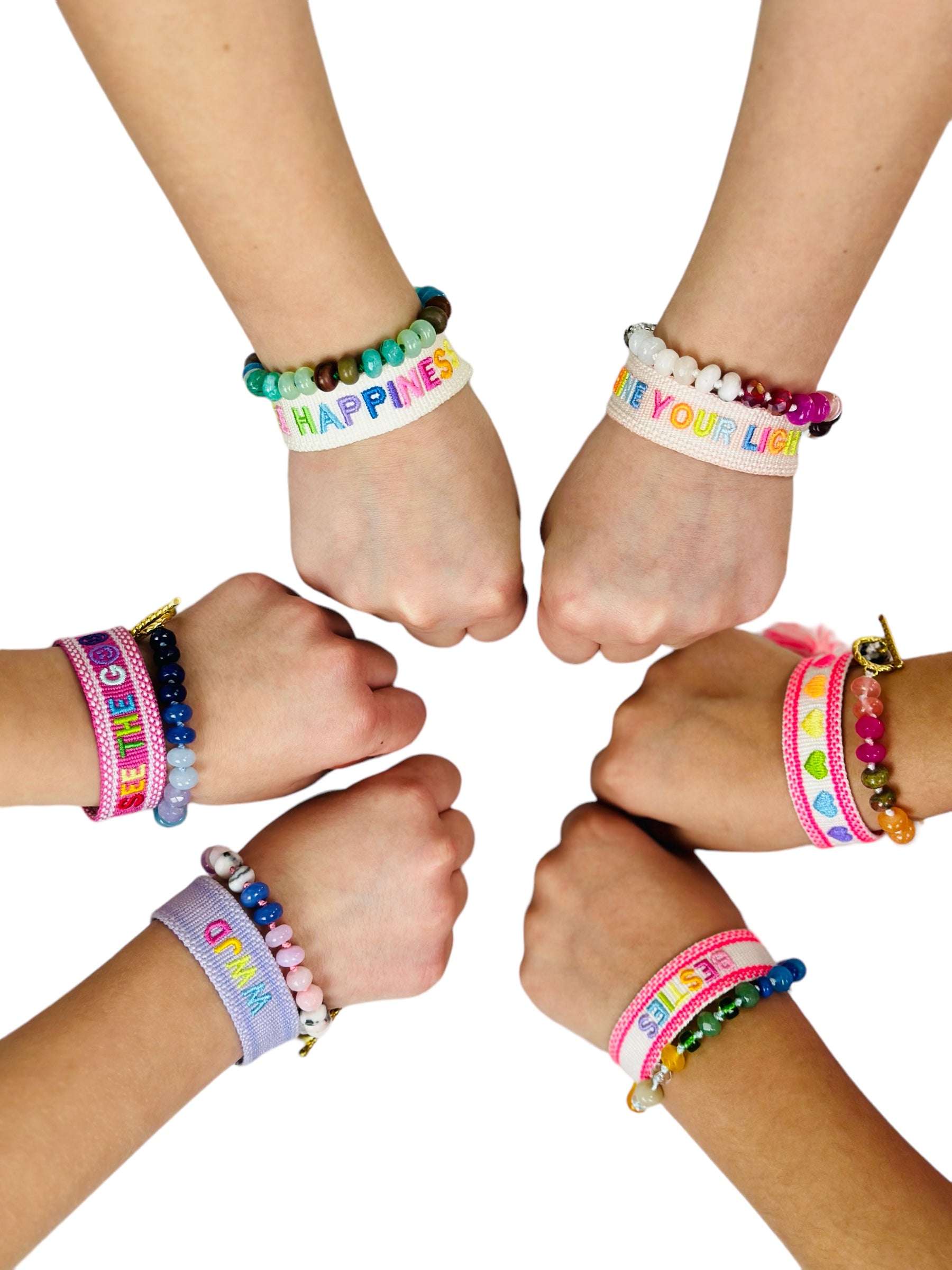 These natural stone bracelets will make a beautiful addition to your Tween's bracelet collection! Wear them individually, stacked, or pair with our Kenzie Collection woven bracelets.